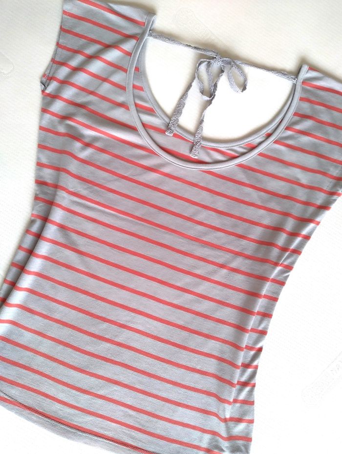 T-shirt sans manche gris à rayures corail - In Extenso • Coupe droite • Décolleté arrondi • Dos arrondi avec lien brodé • Taille 36 ➥ Excellent état • Largeur aisselle 47 cm • Longueur 61 cm