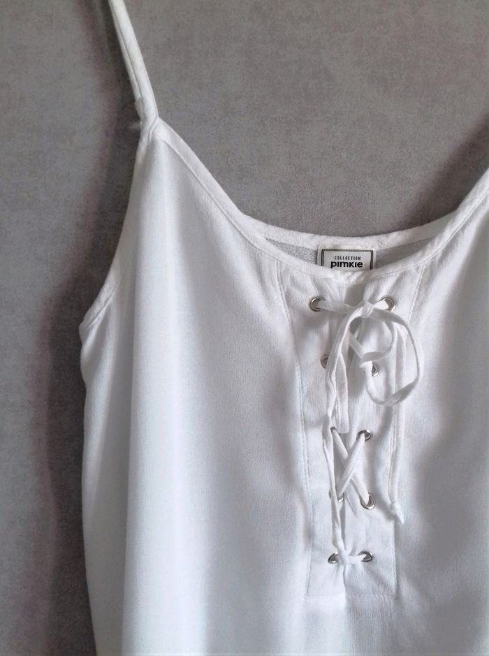 Débardeur loose blanc à lacets - Pimkie • Ample au niveau de la taille • Matière fluide • Taille 40 ➥ Porté une ou deux fois ! Comme neuf ➥ Prix d'achat 14€ • Largeur aisselle 44 cm • Longueur avant 66 cm
