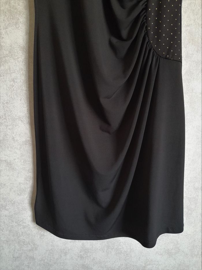 Robe moulante drapée à strass dorés - In Extenso • Col arrondi • Matière fluide et légère • Taille 34/36 ➥ Porté 2 fois, comme neuve • Largeur aisselle 38 cm • Longueur 85 cm