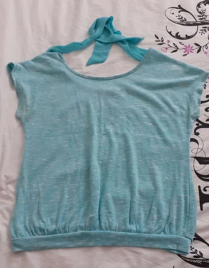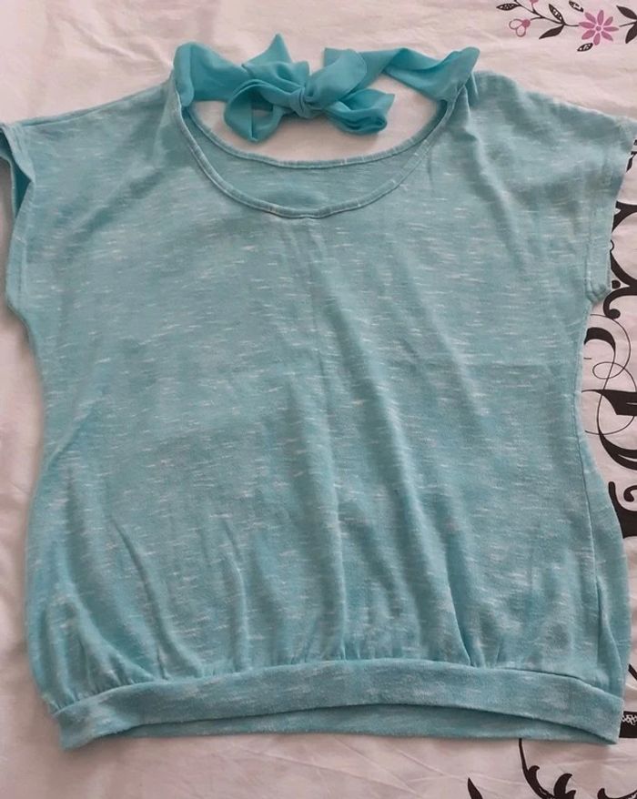 Pull fin manches courtes avec nœud dans le cou Taille L 42/44 #femmeLlounol02