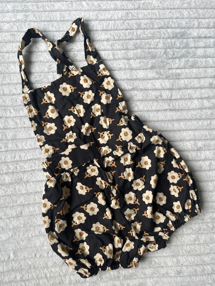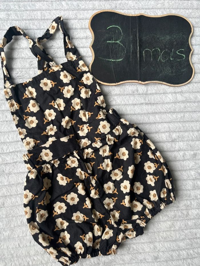 #lucie190510bebefille3mois 💥 salopette short 💥 noire 💥 fleurs jaunes 💥 taille 3 mois 💥 très bon état 📦 envoi rapide et soigné 🍀 réduction sur les lots activée