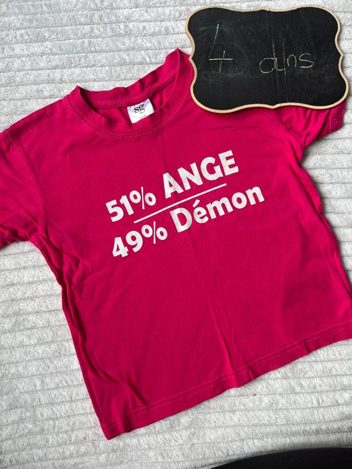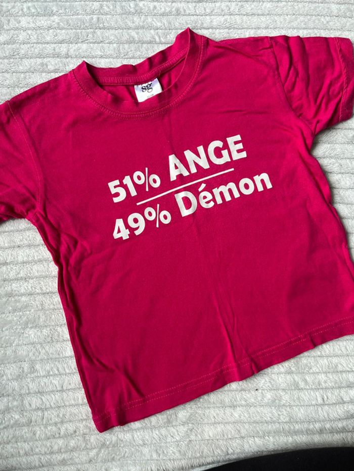 #lucie190510fille4ans 💥 teeshirt 💥 rose fuchsia 💥 SG 💥 taille 3-4 ans 💥 très bon état 💥 « 51% ange 49% démon » Toutes mes annonces fille taille 4 ans ici : #lucie190510fille4ans 📦 envoi rapide et soigné 🍀 réduction sur les lots activée