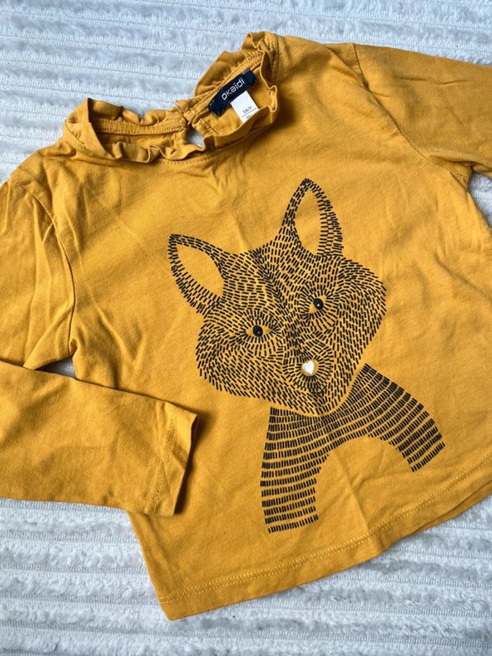 #lucie190510bebefille36mois3ans 💥 teeshirt 💥 manches longues 💥 Okaidi 💥 jaune moutarde 💥 taille 3 ans 💥 très bon état 💥 motif loup 💥 bouton dans le dos Toutes mes annonces fille taille 3 ans ici : #lucie190510bebefille36mois3ans 📦 envoi rapide et soigné 🍀 réduction sur les lots activée