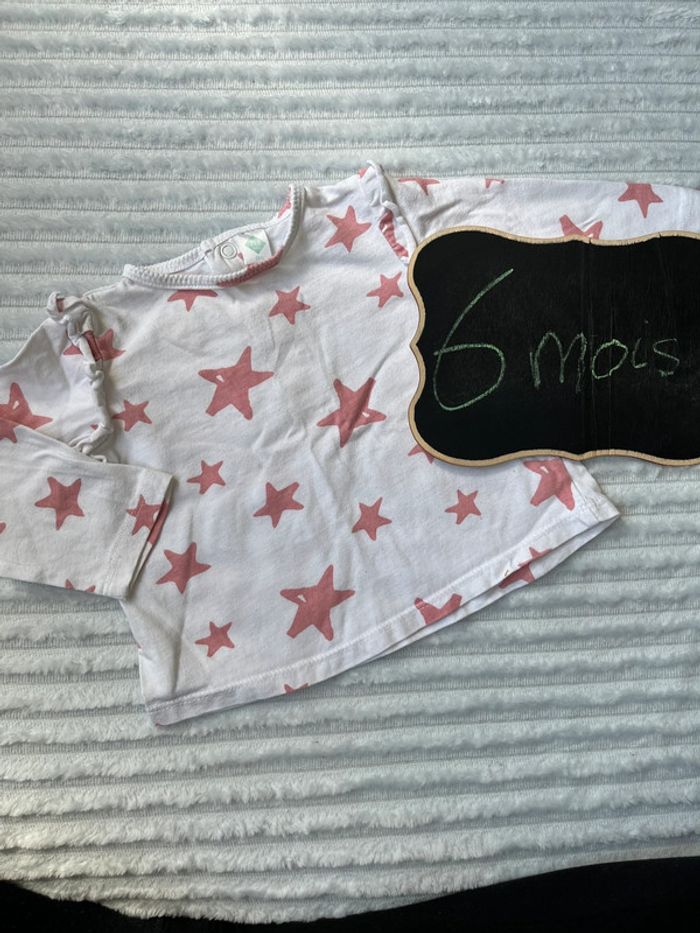#lucie190510bebefille6mois 💥 teeshirt 💥 manches longues 💥 blanc 💥 tex 💥 taille 6 mois 💥 très bon état 💥 étoiles roses 💥 boutons pression dans le dos Toutes mes annonces fille taille 6 mois ici : #lucie190510bebefille6mois 📦 envoi rapide et soigné 🍀 réduction sur les lots activée