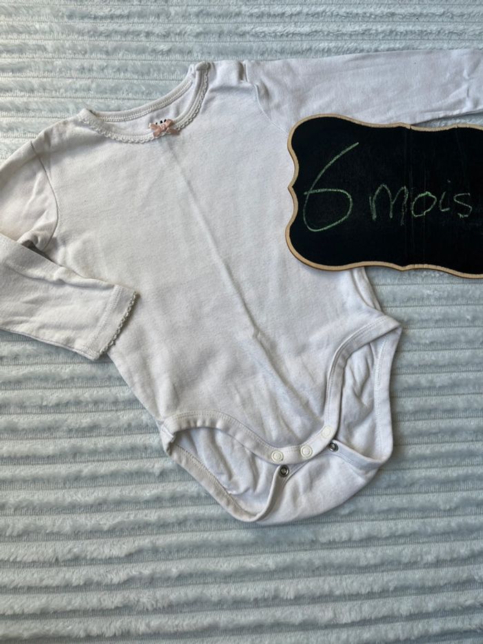 #lucie190510bebefille6mois 💥 body 💥 manches longues 💥 H&M 💥 taille 4-6 mois 💥 très bon état 💥 blanc 💥 petit noeud rose Toutes mes annonces fille taille 6 mois ici : #lucie190510bebefille6mois 📦 envoi rapide et soigné 🍀 réduction sur les lots activée