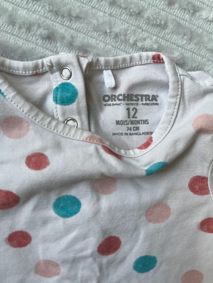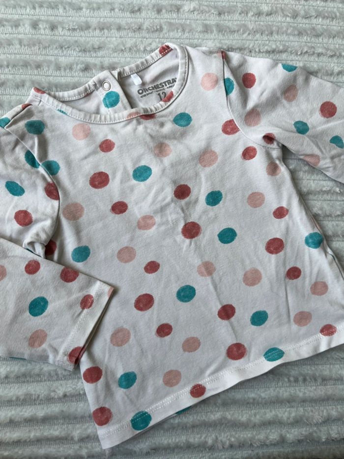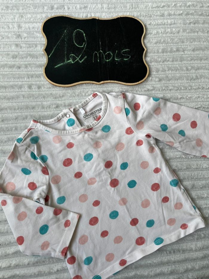 #lucie190510bebefille12mois 💥 teeshirt 💥 manches longues 💥 blanc 💥 orchestra 💥 pois multicolores 💥 taille 12 mois 💥 très bon état 💥 boutons pression dans le dos Toutes mes annonces fille taille 12 mois ici : #lucie190510bebefille12mois 📦 envoi rapide et soigné 🍀 réduction sur les lots activée