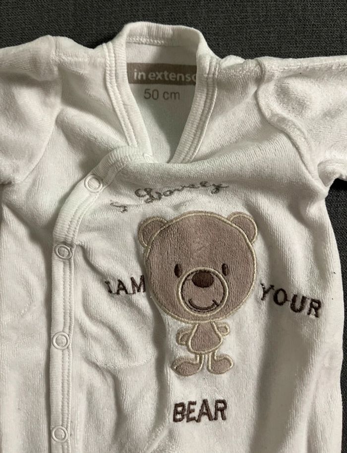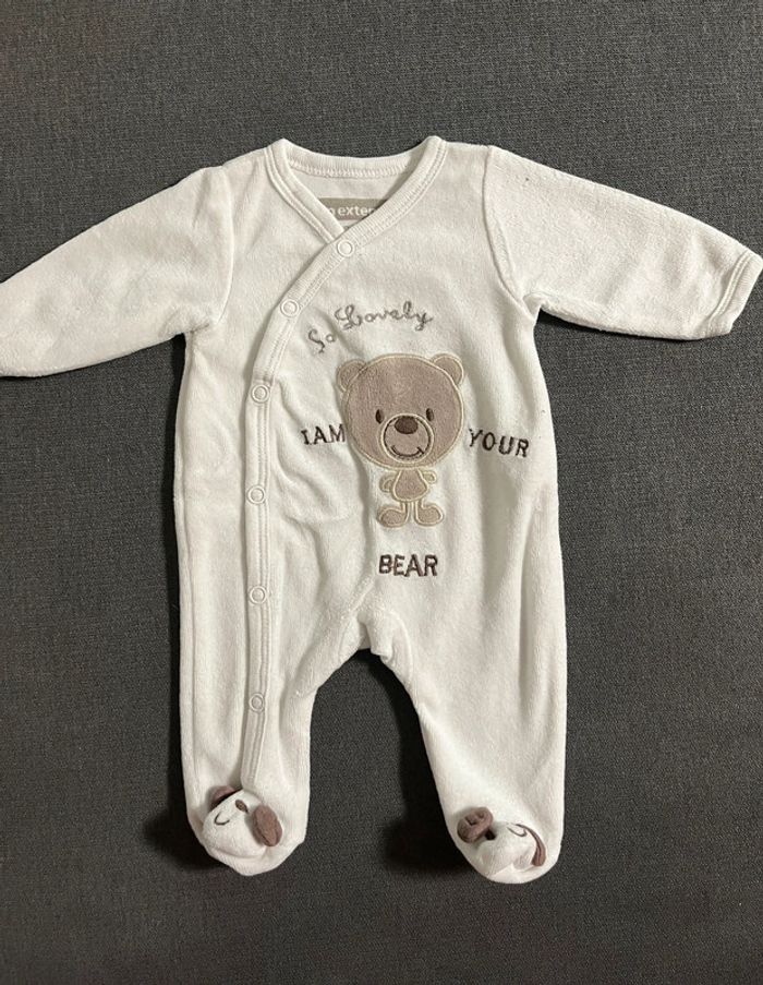 Pyjama 0 mois en velours en parfait état. Dessin d’ourson, ouverture par le devant. Petits oursons sur les pieds #lucie190510bebefillenaissance #lucie190510bebegarconnaissance #lucie190510bebemixtenaissance