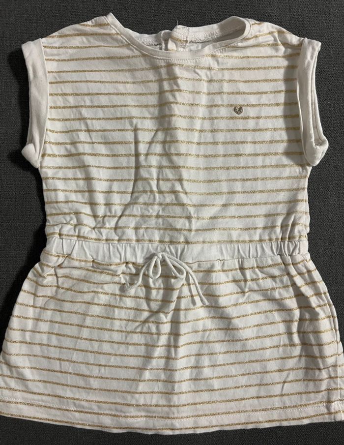Robe manches courtes en très bon état, traits dorés et pailleté tout le long. #lucie190510bebefille9mois