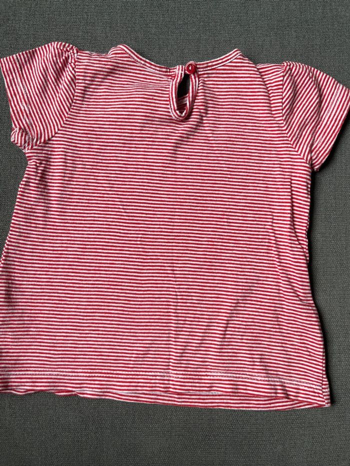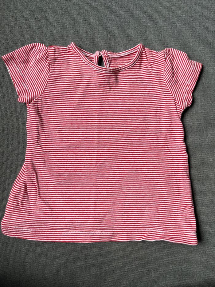 Teeshirt rayé rouge et blanc taille 6 mois en très bon état. Tous mes articles fille 6 mois ici : #lucie190510bebefille6mois