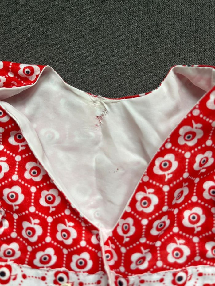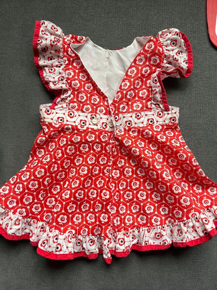 Tunique vintage taille 9 mois. Boutons à l’arrière pour la fermer. La tunique est abîmée à l’intérieur sur le devant (voir photo) mais ça ne se voit pas une fois portée #lucie190510bebefille9mois