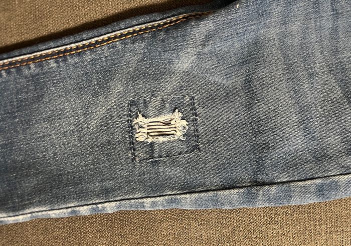 Jean tape à l’œil taille 6 mois en parfait état. Effets déchirés à plusieurs endroits (voir photos). Boutons pour ajuster la taille #lucie190510bebegarcon6mois #lucie190510bebefille6mois #lucie190510bebemixte6mois