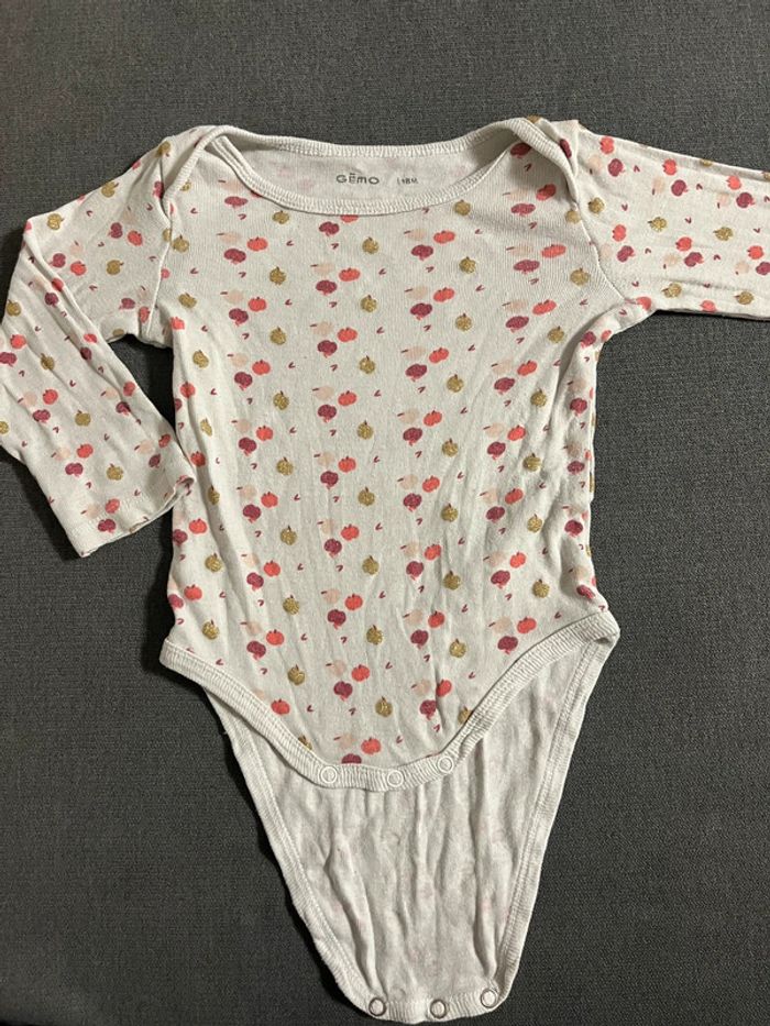 Body manches longues taille 18 mois de marque Gemo en très bon état. Motifs pommes #lucie190510bebefille18mois