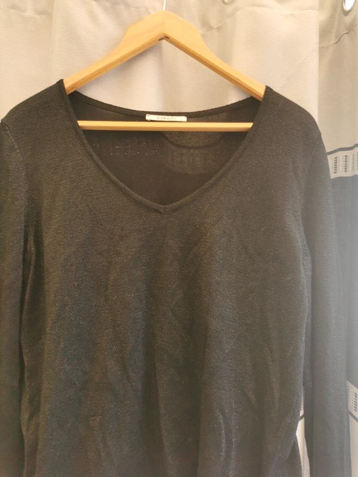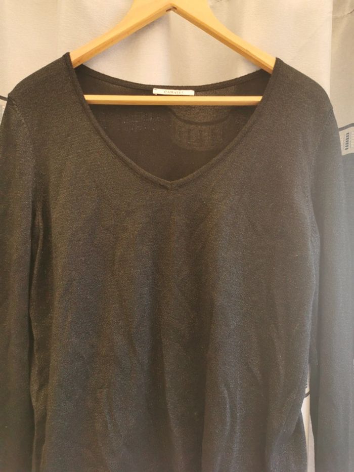 Petit pull Camaïeu demie saison Col V Au dos petits plis, original Toutes petites paillettes T 40 Reduction en lots activée Envoi rapide et soigné J accepte les offres dans la limite du raisonnable N hesitez pas à vous abonner à mon profil souvent des nouveautés
