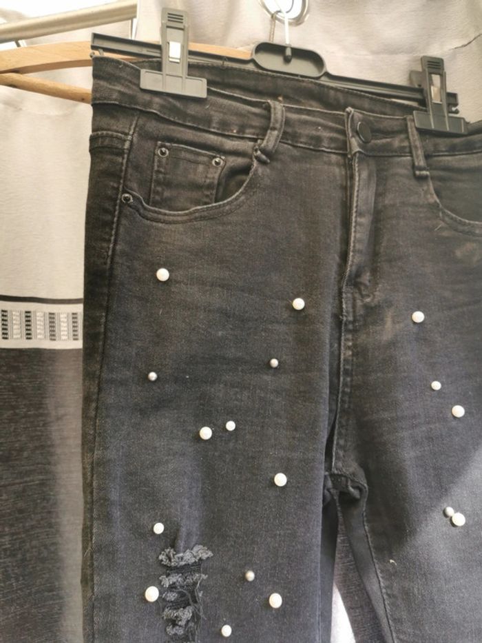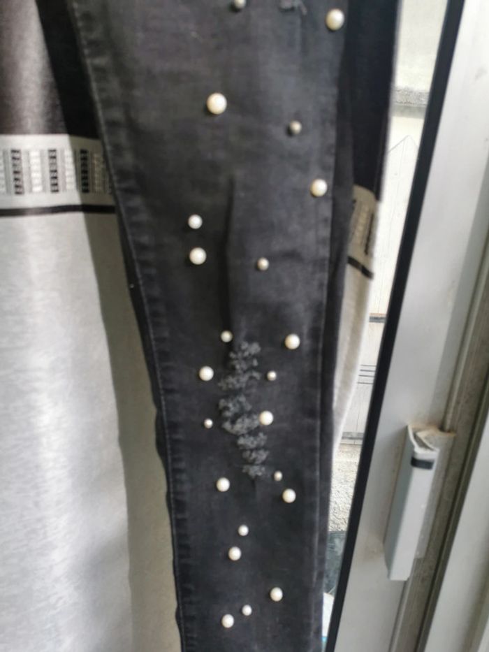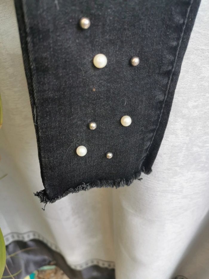 Jean noir femme t 36 perles blanches elasthanne - photo numéro 4