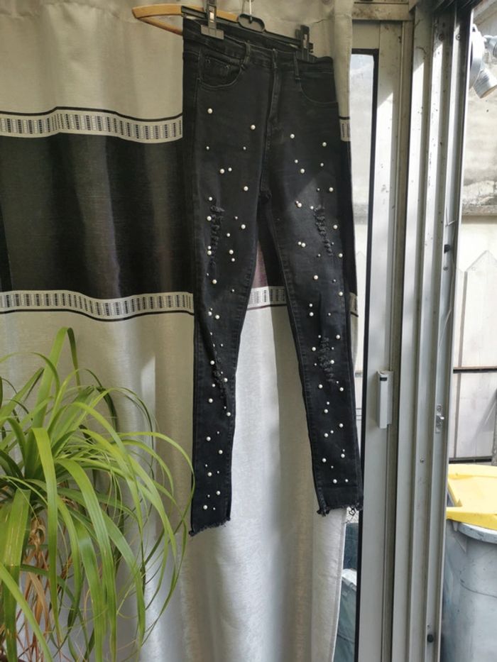 Jean noir femme t 36 perles blanches elasthanne