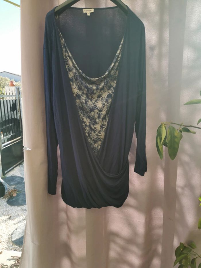 Jolie tunique drapée Fashion t 50 /52 Drapée et longue 91 cms Bel imprimé Confortable et originale Si besoin est j expédie dans la journée Reduction en lots activée Envoi rapide et soigné J accepte les offres dans la limite du raisonnable N hesitez pas à vous abonner à mon profil souvent des nouveautés