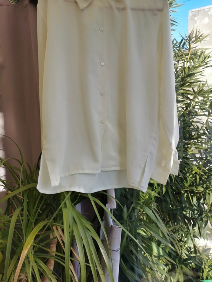 Blouse ecrue en 44 Sympa broderies sur le col Fendu sur les côtés Pour une tenue Class Reduction en lots activée Envoi rapide et soigné J accepte les offres dans la limite du raisonnable N hesitez pas à vous abonner à mon profil souvent des nouveautés