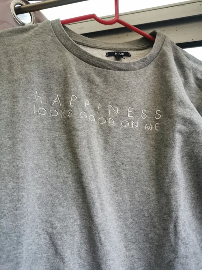 Sweat femme Kiabi en taille L Gris inscription devant Épaules à épaules 50 cms Aisselle a aisselle 52 cms Longueur 60 cms Chaud car molletonné Reduction en lots activée Envoi rapide et soigné J accepte les offres dans la limite du raisonnable N hesitez pas à vous abonner à mon profil souvent des nouveautés