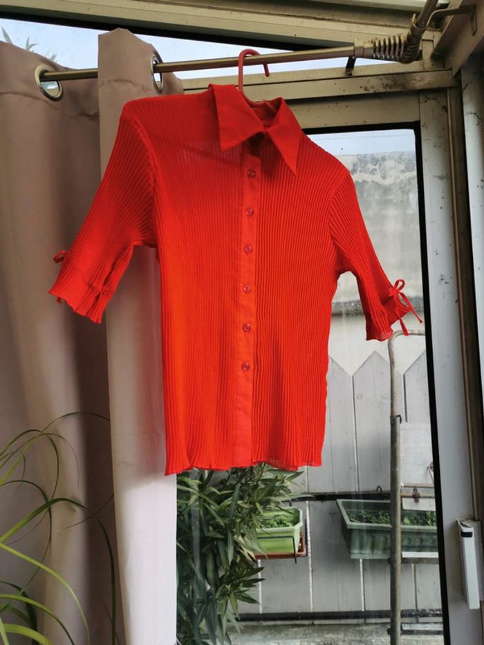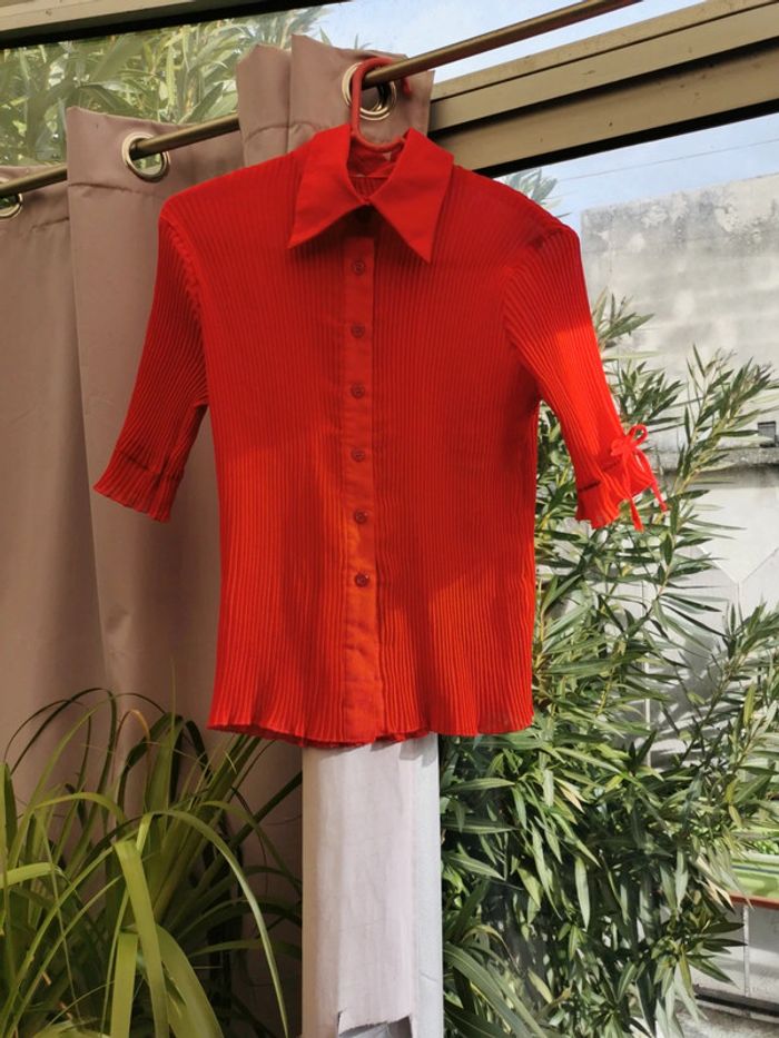 Joli chemisier plissé Dragone d oro en 40 Sympa entuerement plissé Petits noeuds aux manches Longueur 57 cms Ideal pour les fetes (j expédie dans la journée si besoin) Reduction en lots activée Envoi rapide et soigné J accepte les offres dans la limite du raisonnable N hesitez pas à vous abonner à mon profil souvent des nouveautés