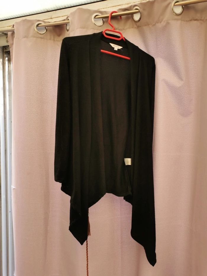 Gilet Ardene neuf taille XS destructuré Longueur dos 70 cms Devant 87 cms Ceinture tressée petits pompons Reduction en lots activée Envoi rapide et soigné Aisselle a aisselle 40 cms Valeur 26 livres J accepte les offres dans la limite du raisonnable N hesitez pas à vous abonner à mon profil souvent des nouveautés
