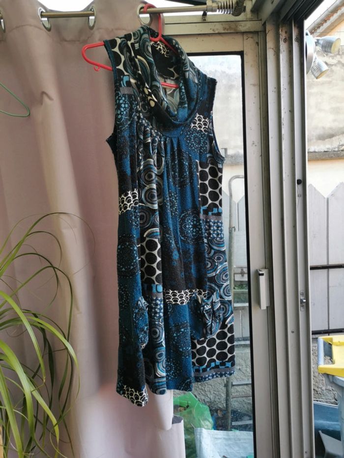 Robe d hiver Jacqueline Riu t M 38 cms d épaule à épaule 44 cms d aisselle à aisselle 110 cms de longueur Col retombant 2 poches il manque un bouton comme deco sur une des poches Elle est douce et chaude A porter avec un sous pull ou tee shirt manches longues Reduction en lots activée Envoi rapide et soigné J accepte les offres dans la limite du raisonnable N hesitez pas à vous abonner à mon profil souvent des nouveautés