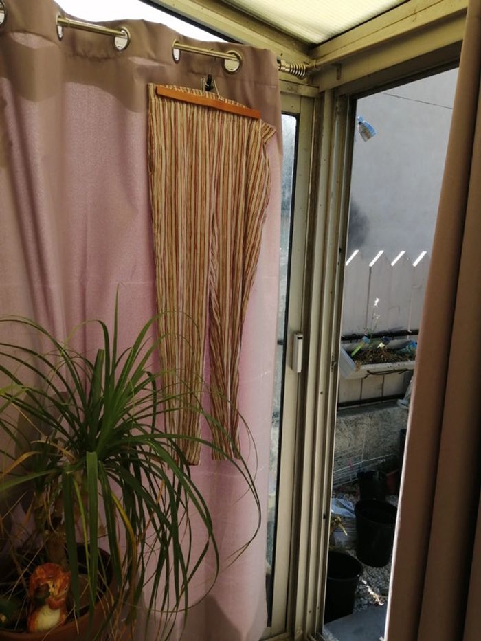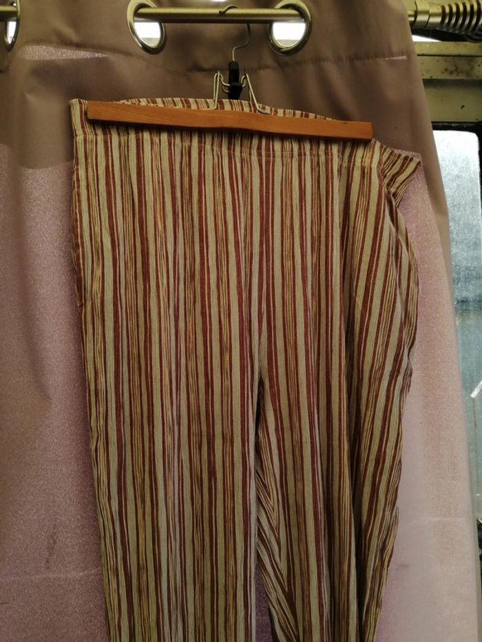 Pantalon rayé , léger pour l'été, agréable à porter, taille 46 , elastiqué à la taille, manque le lien de serrage