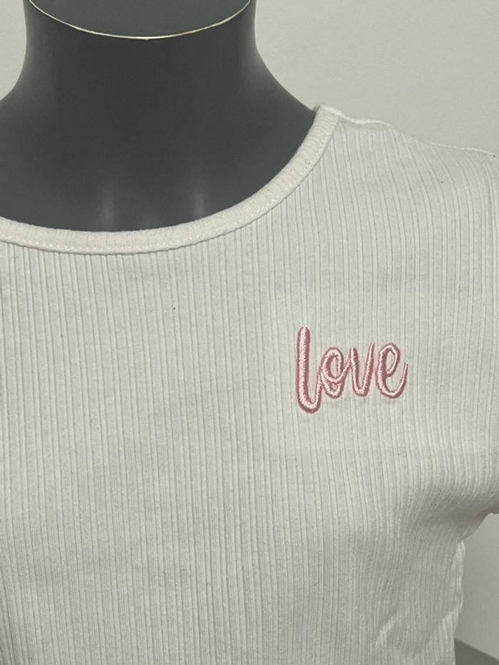 TEE shirt manches courtes de marque Primark en taille 11-12 ans Blanc uni avec inscription love en rose TBE #framboise83f12 #primark