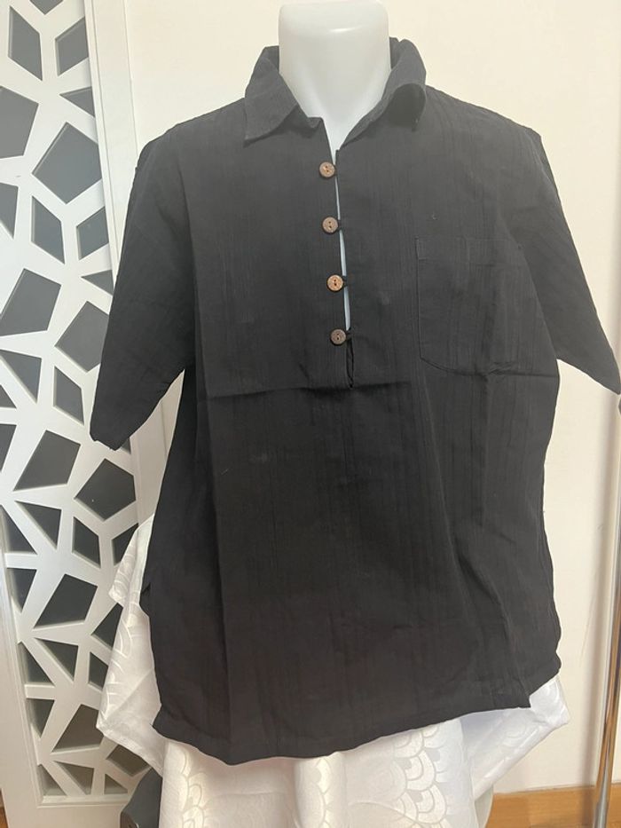 Chemise manches courtes 100% coton Taille L Marque : M&F Collection Couleur noir unie #framboise83homl