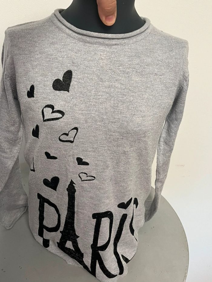 Pull fin sur le thème de Paris de couleur gris et noir en taille 6 ans de marque in extenso TBE #framboise83f6
