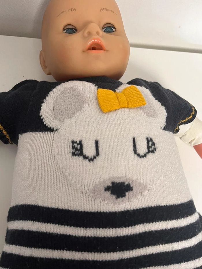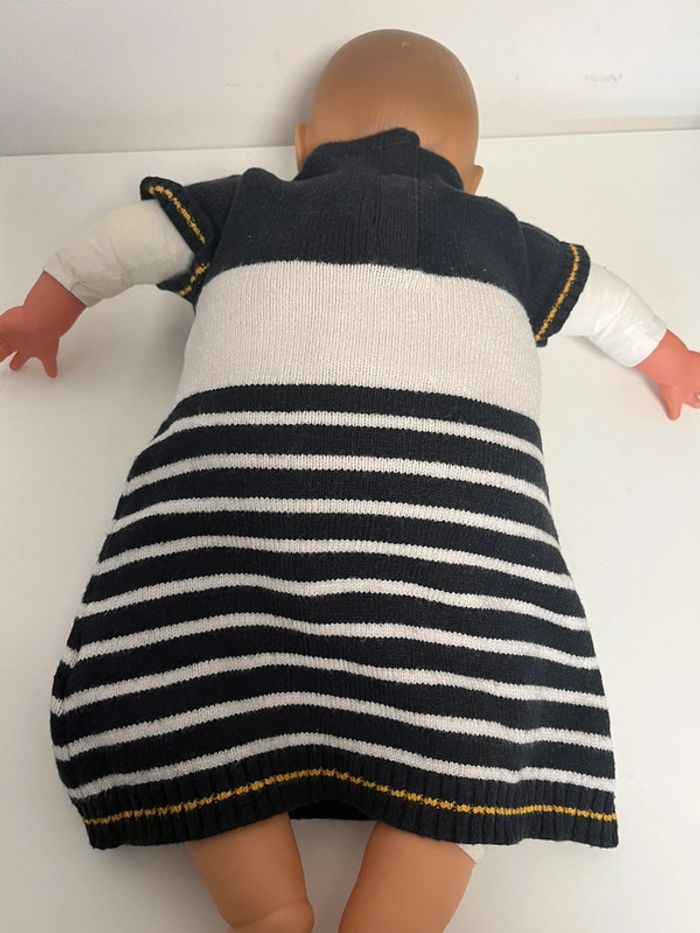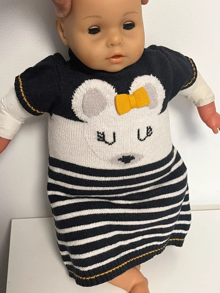 Robe d’hiver manches courtes de marque orchestra en taille 3 mois Boutons pressions en haut du dos 52% viscose - 29% polyester - 19% polyamide TBE #framboise83ft