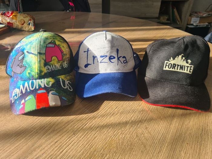 Casquette Among us Casquette bleu et blanche Inzeka Casquette Fortnite avec logo phosphorescent 5€ le lot