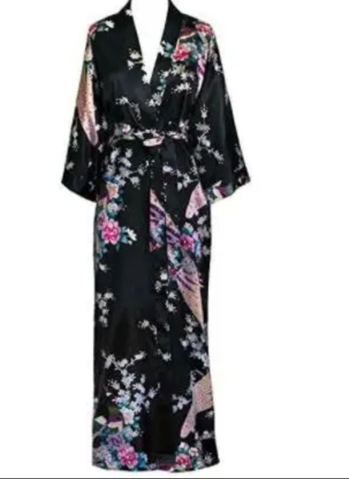 Kimono long (115cm) Très léger Idéal comme peignoir d'été Pas d'étiquette. Taille 38/40 Motif fleurs et paon