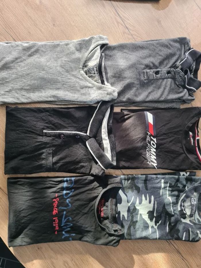 2 polos et 4 tee-shirt manches courtes 1 tommy hilfiger mais certaines lettres commencent à se détachées 1 Teddy Smith Non fumeur 6€ le lot .Vente uniquement au lot