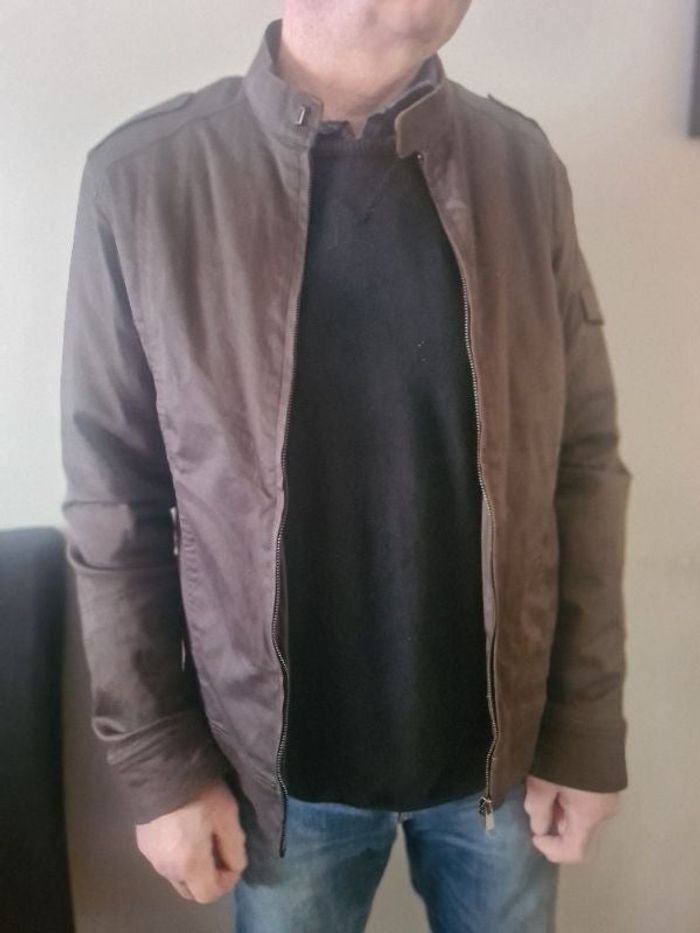 Manteau / blouson marron, assez léger Marque Jules Je l'ai acheté pour mon père car il est indiqué L sur l'étiquette mais trop petit pour lui. Je dirai donc plus du M