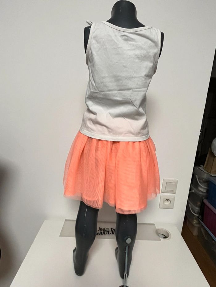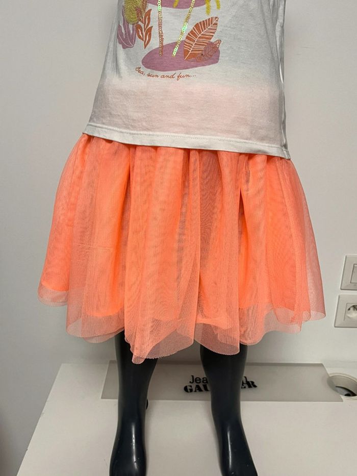 Ensemble fille 6 ans composé : - d’une jupe tulle doublée de couleur corail, de marque H&M, petits fils tirés montrés sur photo mais qui ne se remarque pas - un débardeur de marque Z en bon état #framboise83f6