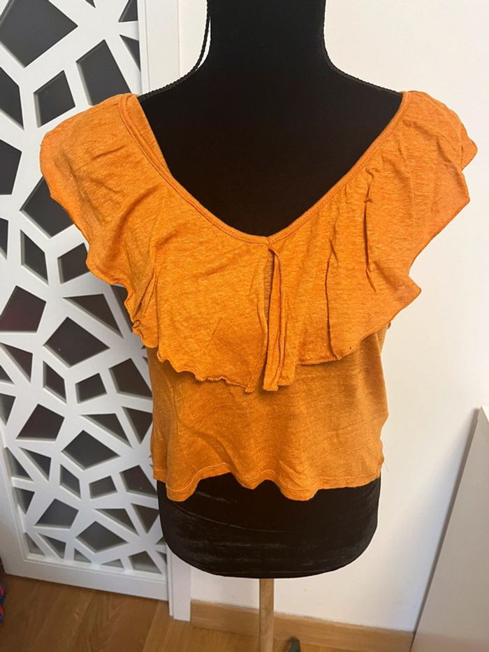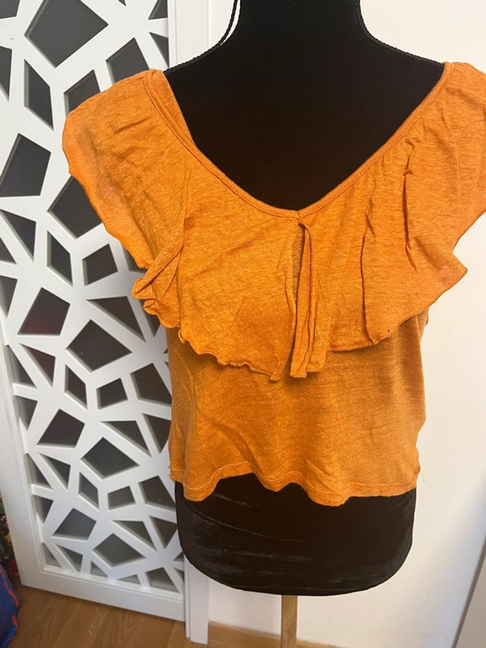 Haut orange uni de marque Zara Il est plus court devant que derrière Taille S TBE #framboise83fem36