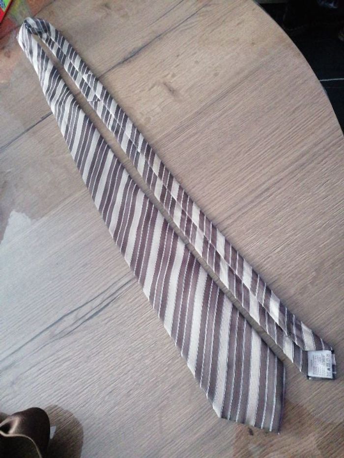 Cravate rayée dans les tons beige / marron Marque original weark OWK La photo avec mon doigt montre de fils détendu mais ne se voit pas en la portant 100% polyester