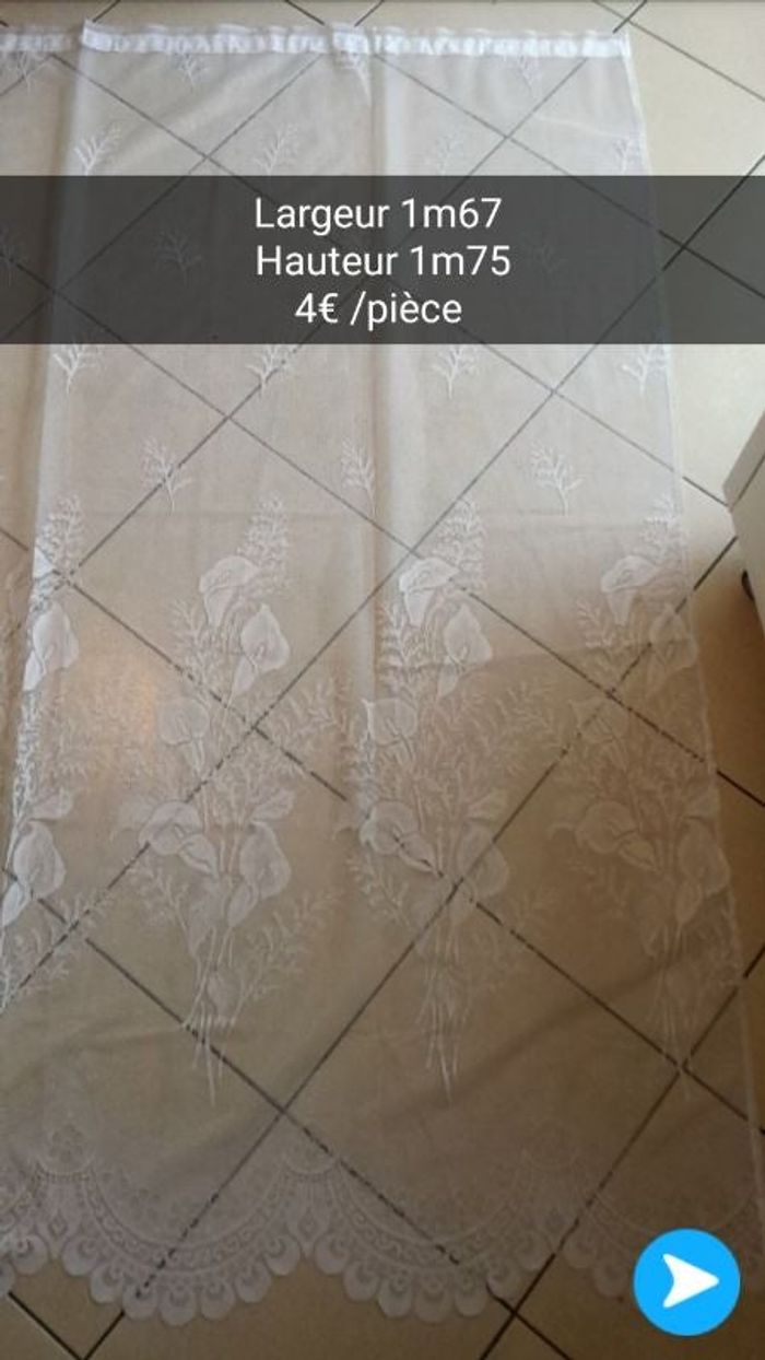 Voilage à agrafes hauteur 1m75 largeur 1m67 motif thème fleurs, végétal Maison non fumeur Voilage ancien, taché voir photo 5
