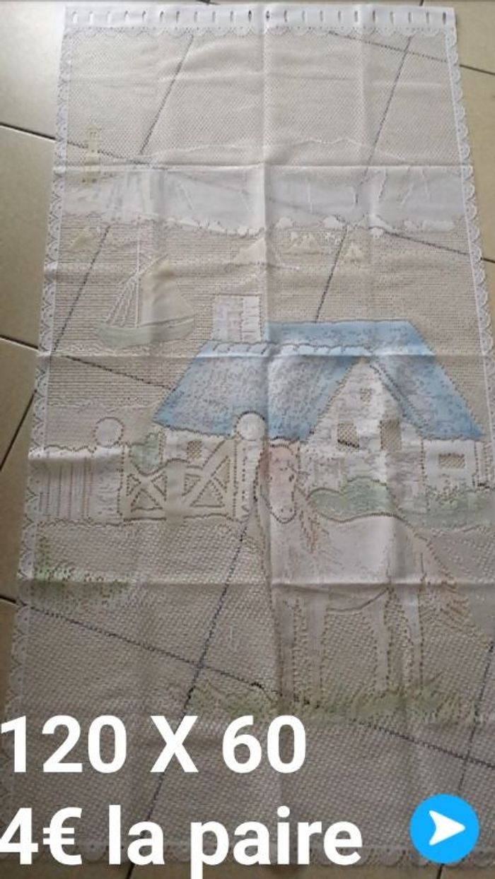 2 Panneaux voilage 120cm de hauteur et 60 cm de large motif cheval, bateau à voile, phare légèrement coloré par endroit