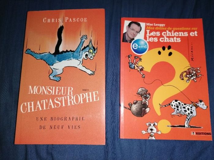 Monsieur Chatastrophe une biographie de neuf vies de Chris Pascoe. Editions France loisirs. ISBN 2-7441-9624-X (3,5€) Mes drôles de questions sur les chiens et les chats de Mac Lesggy, éditions M6. Découvrez leurs mondes en 120 questions, après avoir lu ce livre, vos meilleurs amis n'auront plus de secret pour vous ! ISBN 978 2 915127 26 3 (3,5€) 3,5€ PAR LIVRE