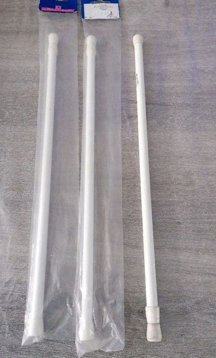 Lot de 3 barres autobloquantes (dont 2 neuves dans l'emballage) sans perçage, sans vis. Il suffit de la tourner pour l'agrandir De 40 à 60 cm La maison d'Amandine 6€/ unité ou 15€ les 3