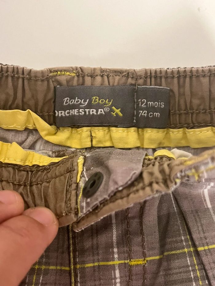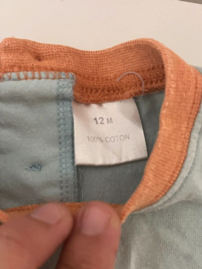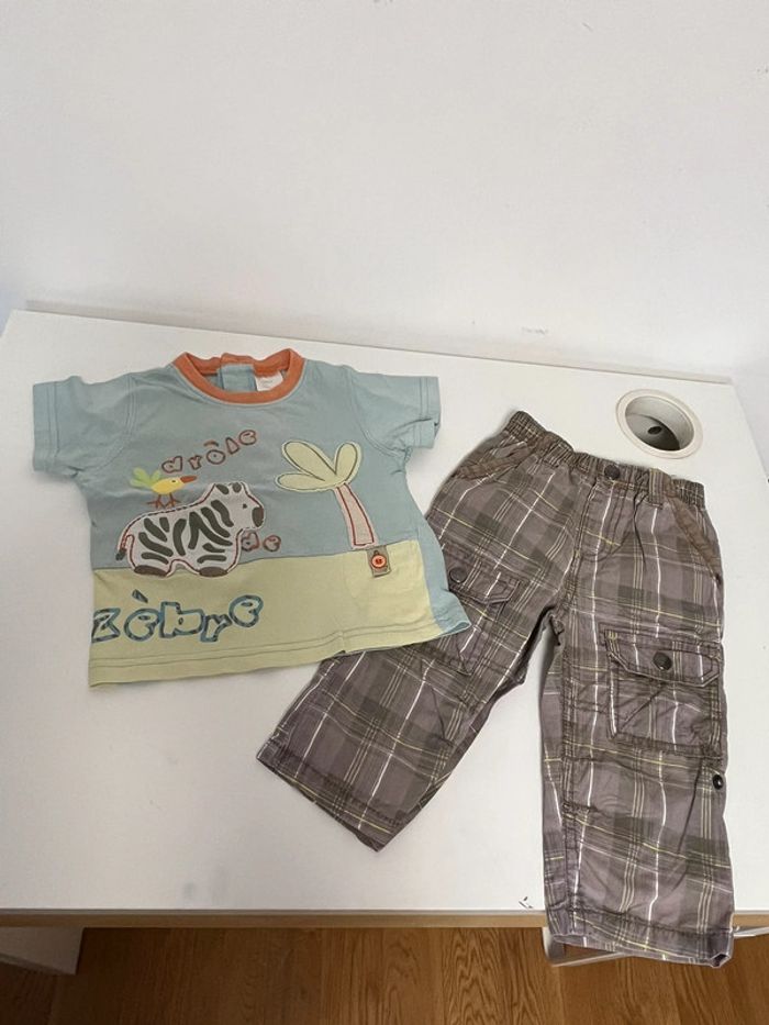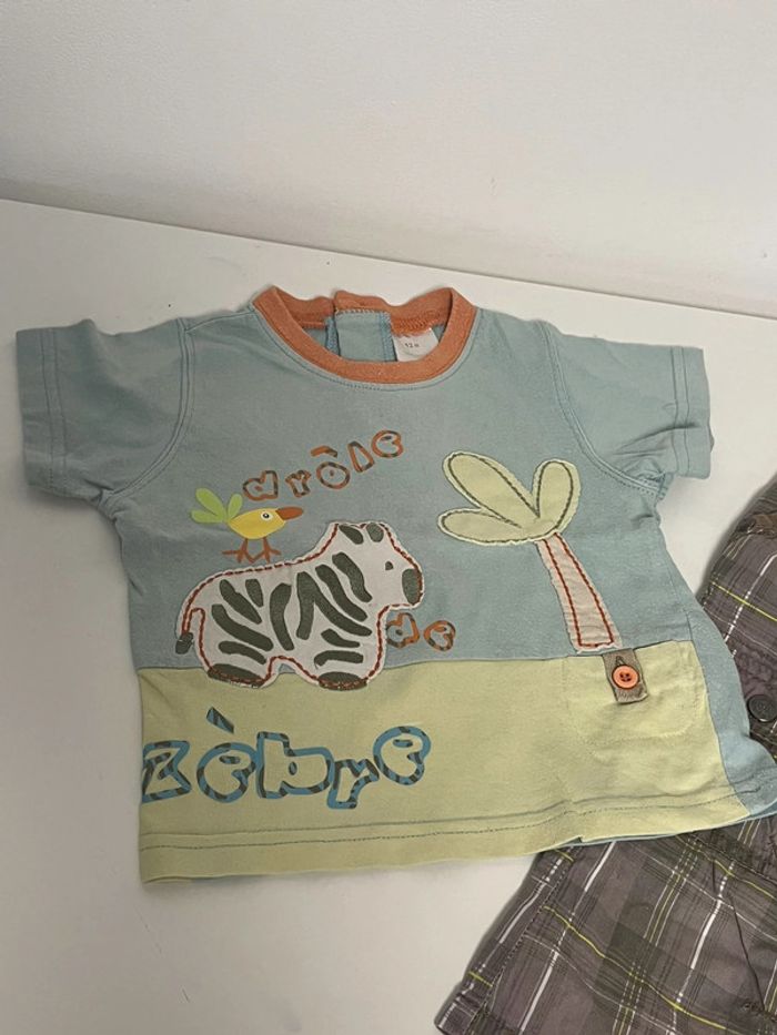 Ensemble garçon en taille 12 mois composé d’un tee shirt manches courtes avec motif zébre, 3 boutons dans le dos et d’un pantalon fin de marque orchestra TBE 100% coton #framboise83gdouzemois