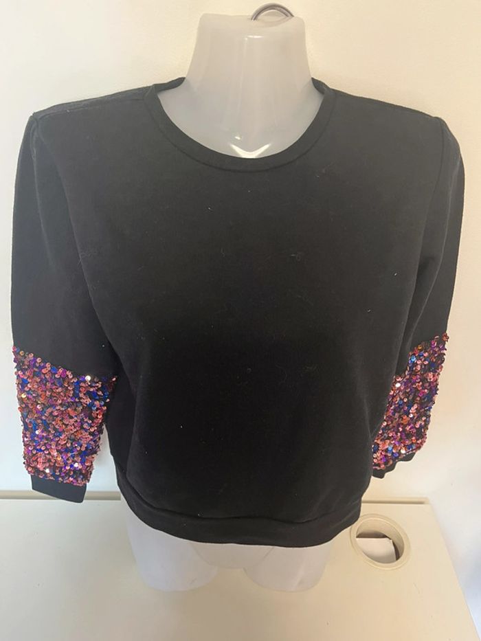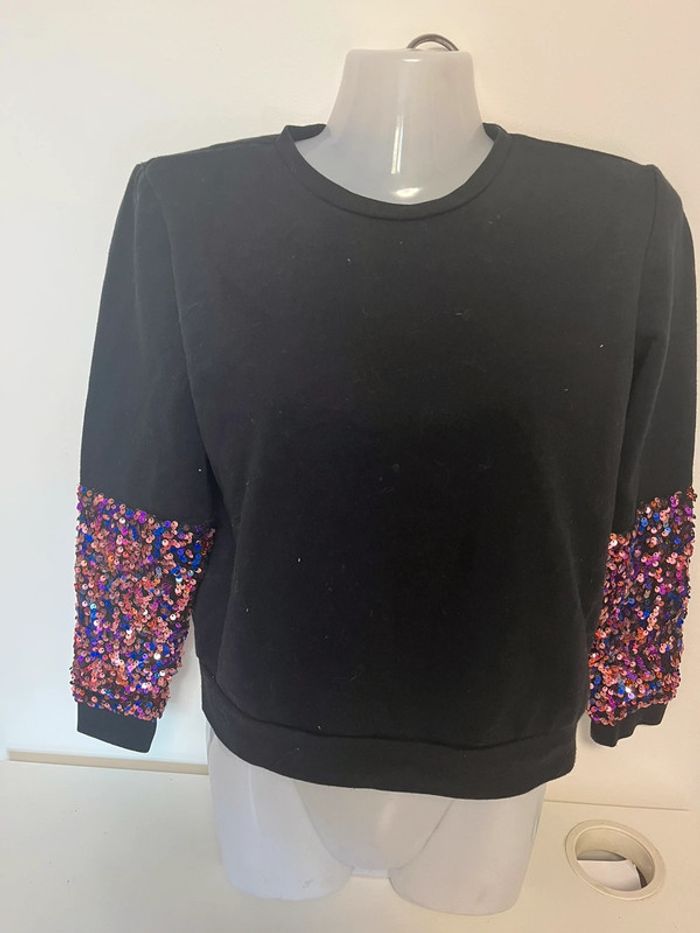 Sweat basic avec sequins sur les manches En taille 12 ans et de marque Kiabi TBE Matiere 60% Cotton et 40% polyester #framboise83f12