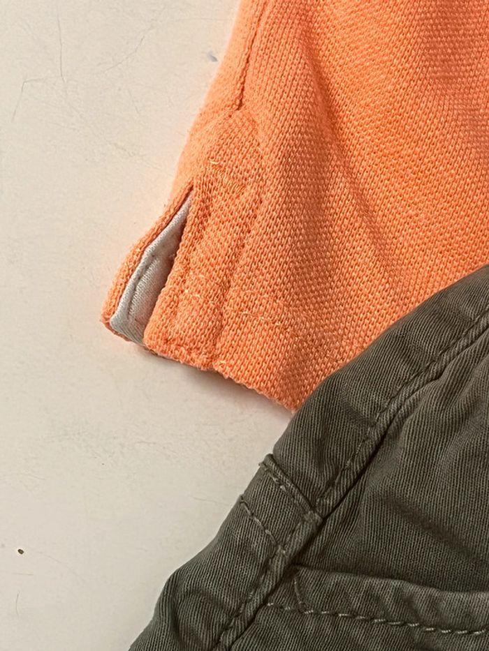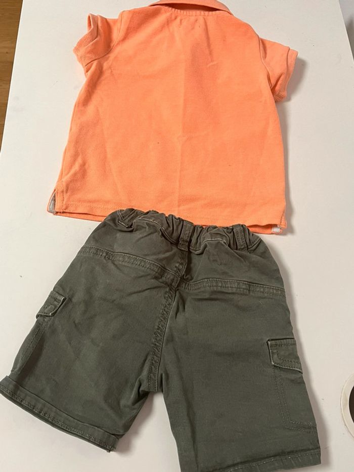 Ensemble 2 ans composé d’un polo corail de marque Kiabi et d’un bermuda kaki de marque gemo #framboise83g2