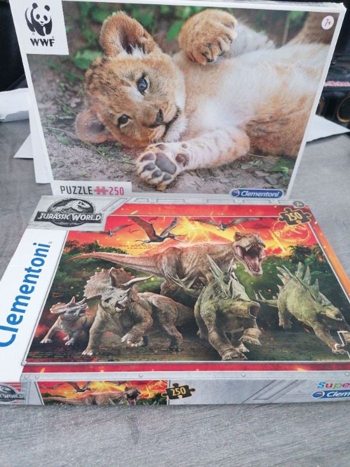 2 puzzles 250 pièces neufs, les puces sont encore emballés dans leur sac d'origine et celui de la WWF est e'core sous cellophane Le puzzle Jurrasic World est un super color dès 7ans => 10€ Le puzzle WWF représente un lionceau, dès 7 ans également =>8€ Ou le lot de 2 pour 15€