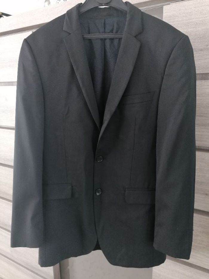 Veste taille 46 soit un M haut/bas 78cm manches 63 cm épaule/ épaule 43cm Modèle ESC espion 54% polyester, 44% laine et 2% elasthane fausses poches devant et 4 poches intérieur pantalon taille 38 37cm à la taille hau/bas 98cm 2 poches devant et 2 poches derrière 65% polyester, 35% viscose les 2 poches avant sont trouées à l'intérieur