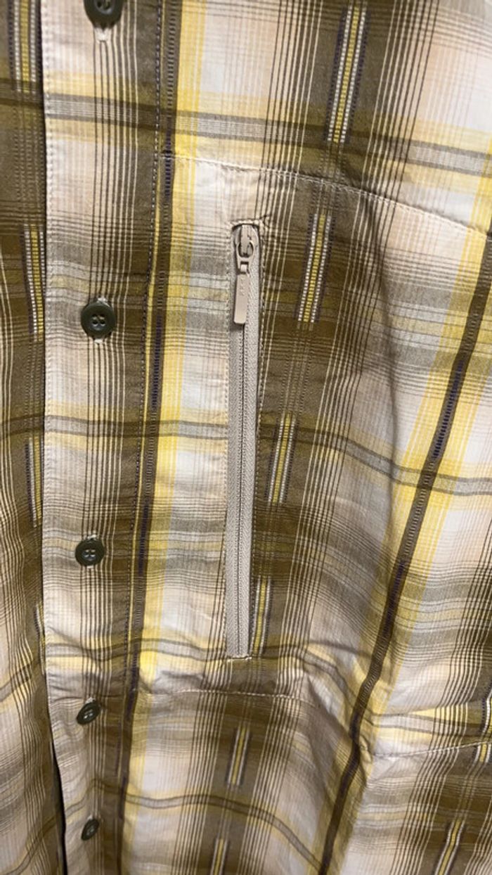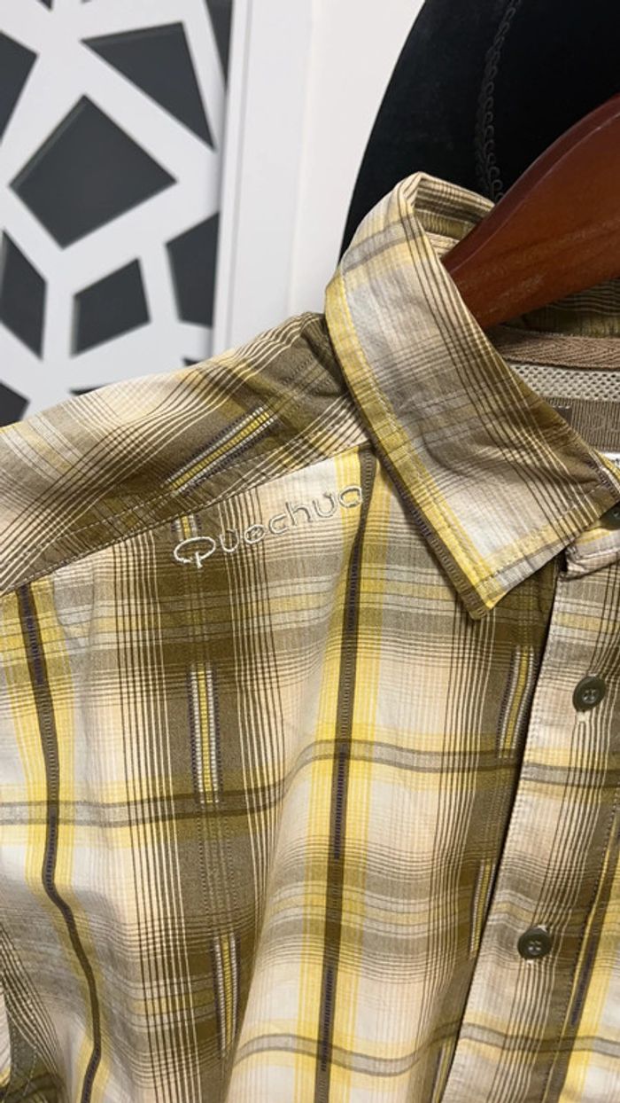 Chemise manches courtes dans les tons de moutarde et kaki 1 poche à fermeture eclair Taille M Marque quechua de décathlon #framboise83homm