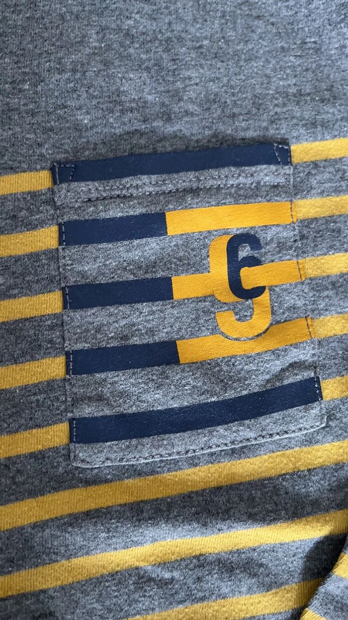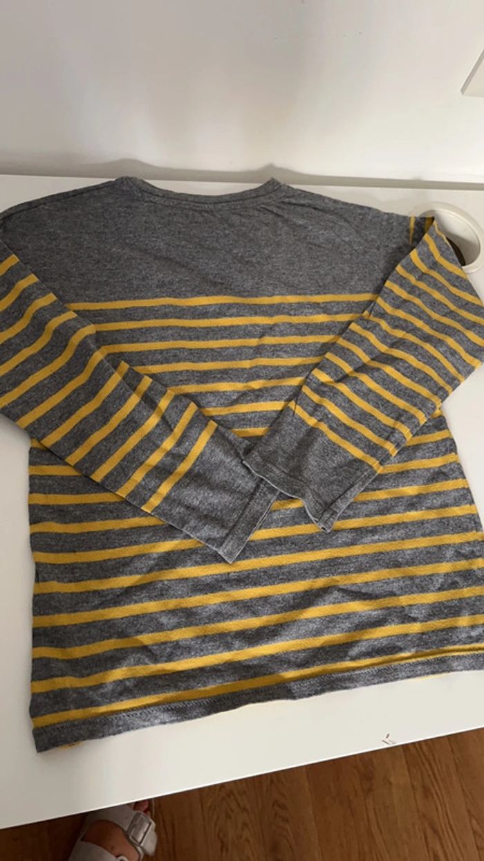 Tee shirt manches longues avec une poche devant à rayures style marinières de couleur gris & jaune moutarde Taille 8 ans #framboise83g8