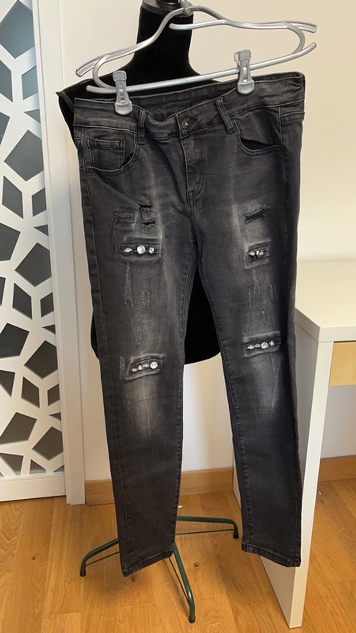 Jean destroy noire Taille 46 sur étiquette mais convient bien pour un 40-42, taille à plat 38 cm mais très extensible #framboise83fem40 #framboise83fem42