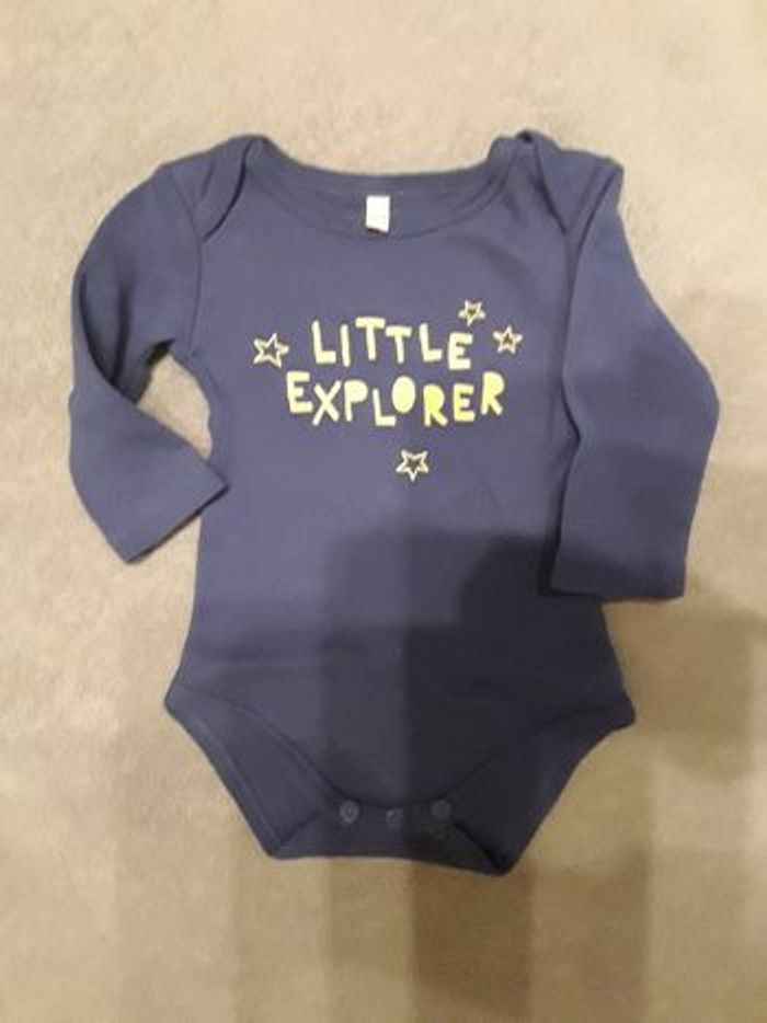 Bodie bleu foncé ave inscriptions. Exellent état. Taille : 6 mois Aux choix dans mon dressing , 5 articles pour 8 euros sur tous les vêtements